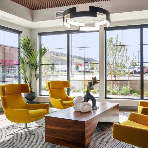 Every apartment for rent features industrial-chic design with exposed concrete, steel accents, and floor-to-ceiling windows framing Rocky Mountain views. Open-concept layouts flow seamlessly with smart home integration, in-unit washers/dryers, and high-speed internet. Choose balconies with mountain views or garden patios with trail access.